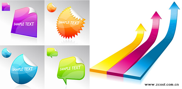 eps format, including jpg preview, keyword: Vector icons, colorful, web2.0, roll angle, round, web page design, three-dimensional arrow, paper, radio gear, vector material