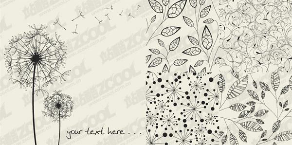 eps format, including jpg preview, keyword: Vector pattern, plants, dandelion leaves, vector material