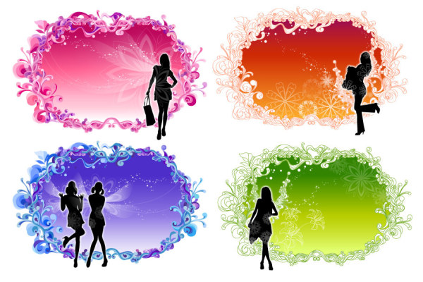 Keyword female fashion figure silhouette lace border pattern vector material